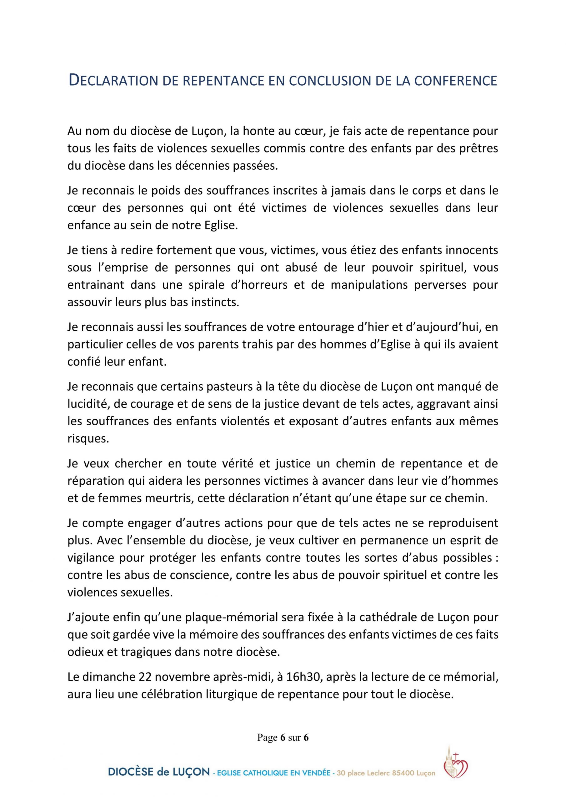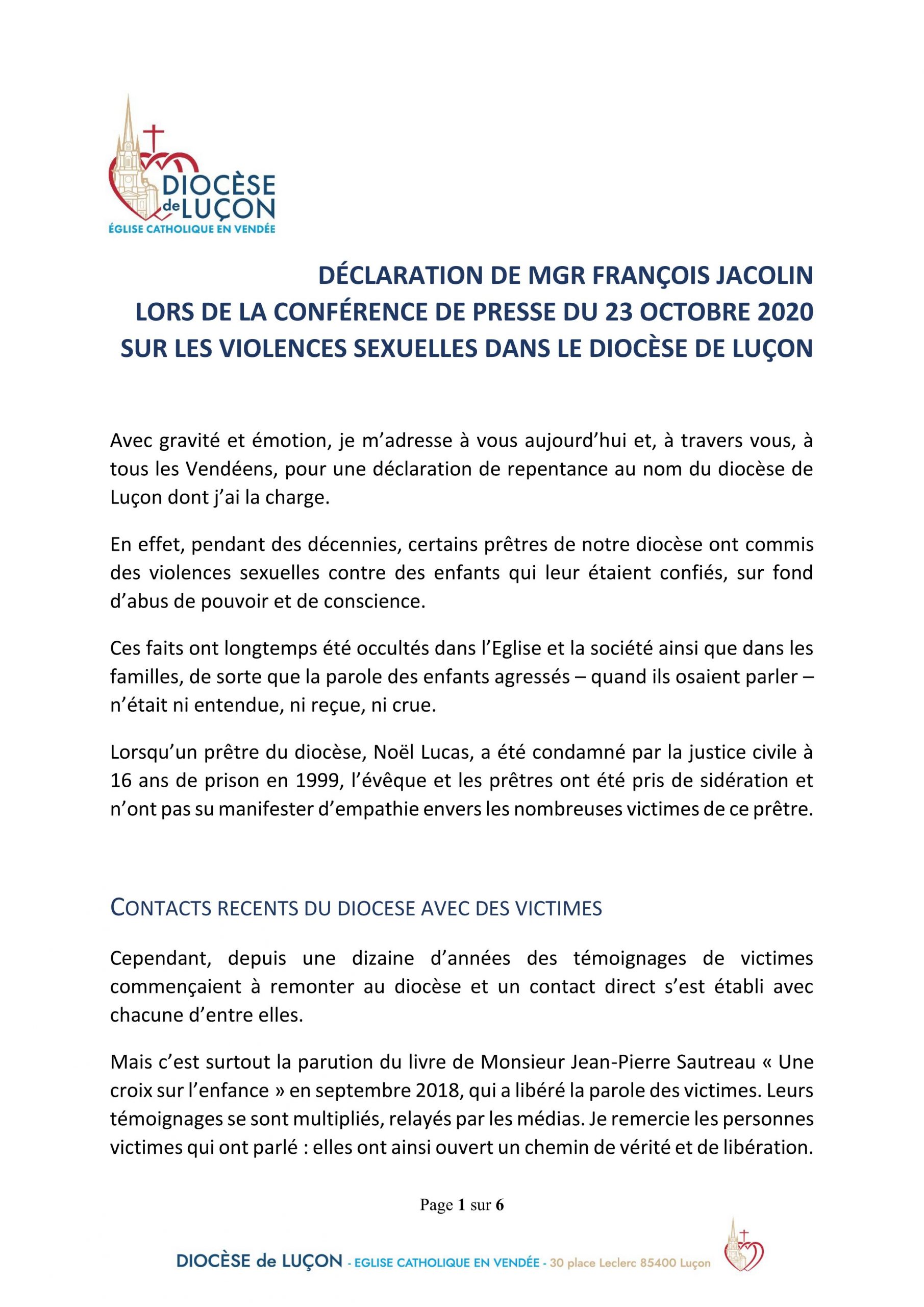 Le 23 octobre 2020, Mgr Jacolin a convoqué la presse pour une cérémonie de repentance.
