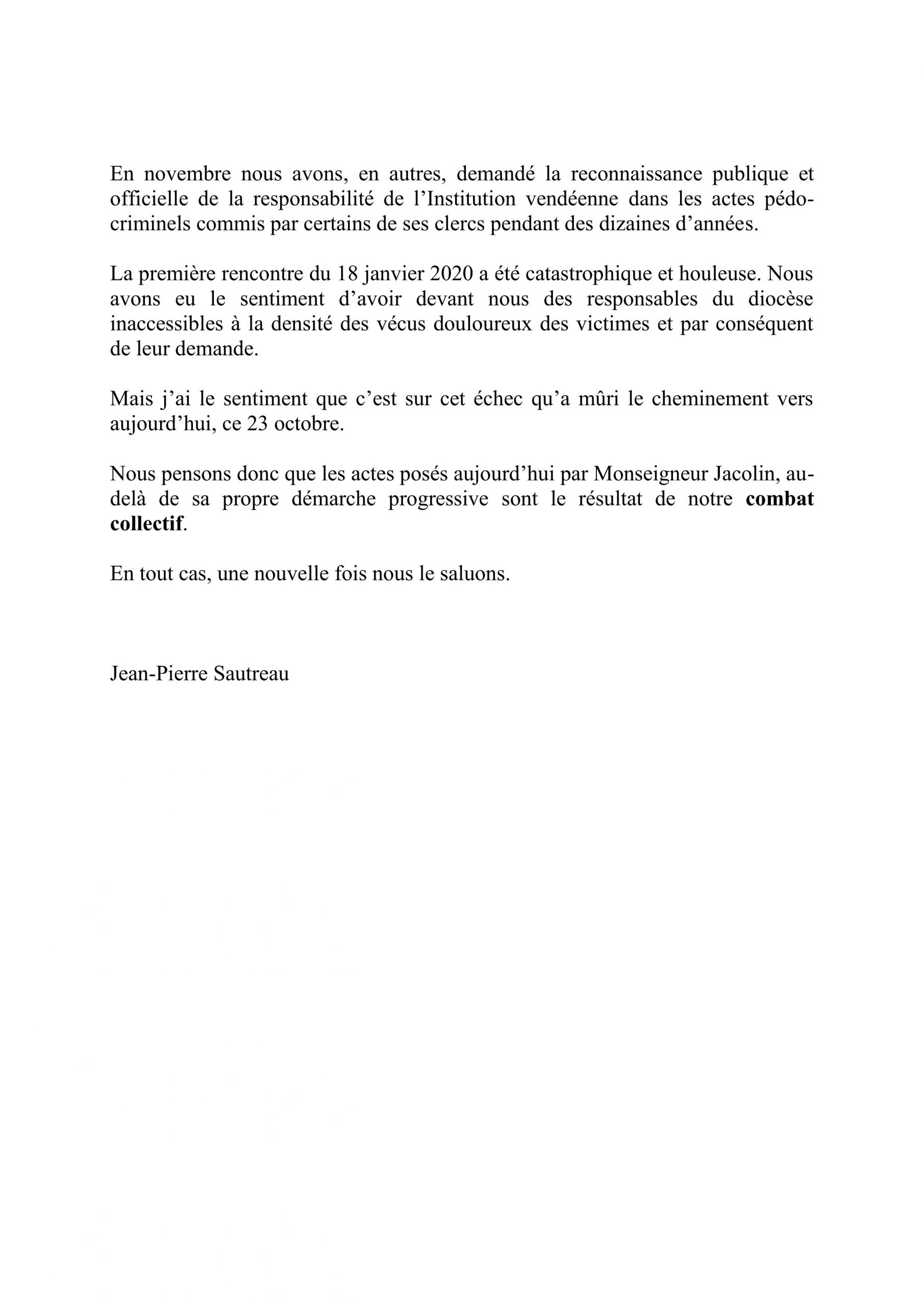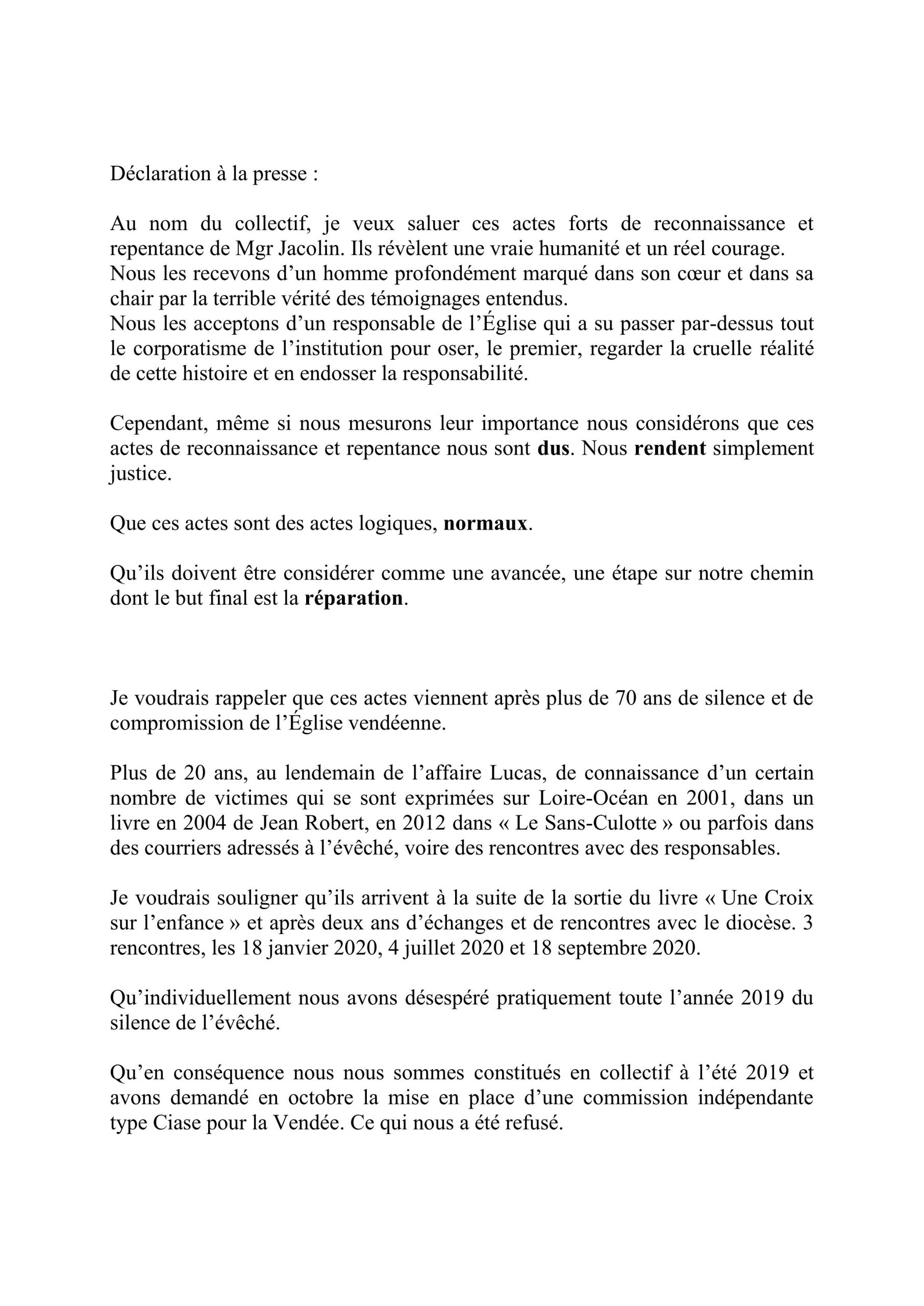 Le 23 octobre 2020, Mgr Jacolin a convoqué la presse pour une cérémonie de repentance.